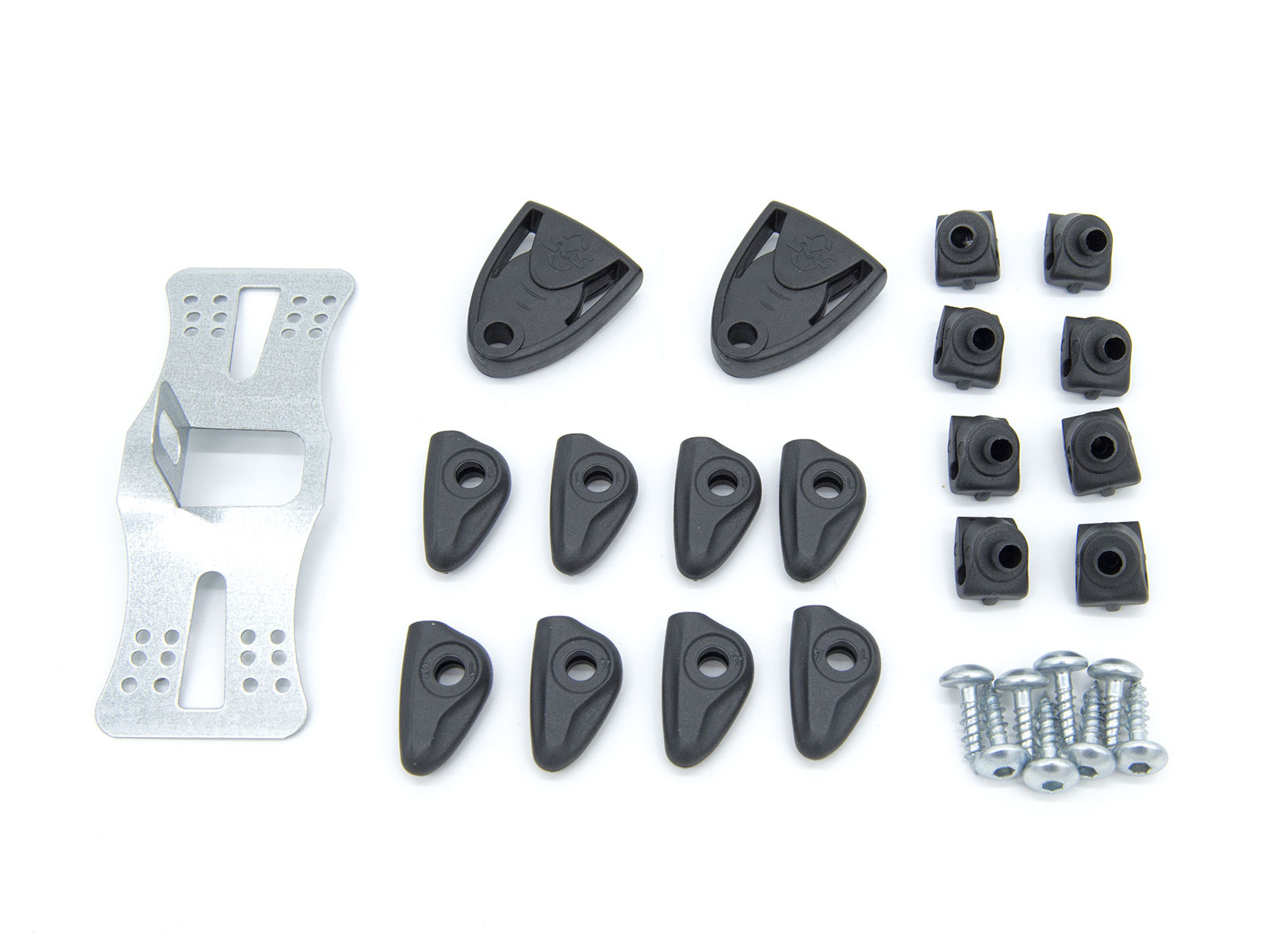 Sada obsahuje plastové úchyty a šroubky na jeden bicykl, tzn. pro dva blatníky a dále můstek pro zadní blatník.